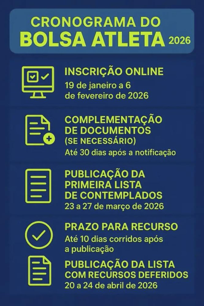 "Inscrições para o Bolsa Atleta 2026 terminam em 06 de Fevereiro"